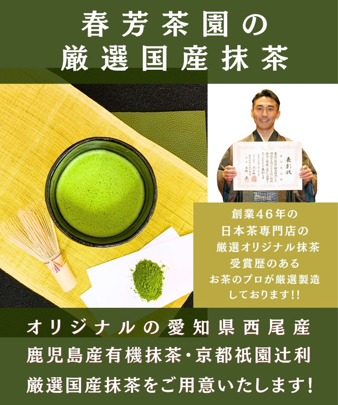 京都宇治産、愛知西尾産、鹿児島有機栽培、静岡産の厳選した抹茶の販売をおこなっています