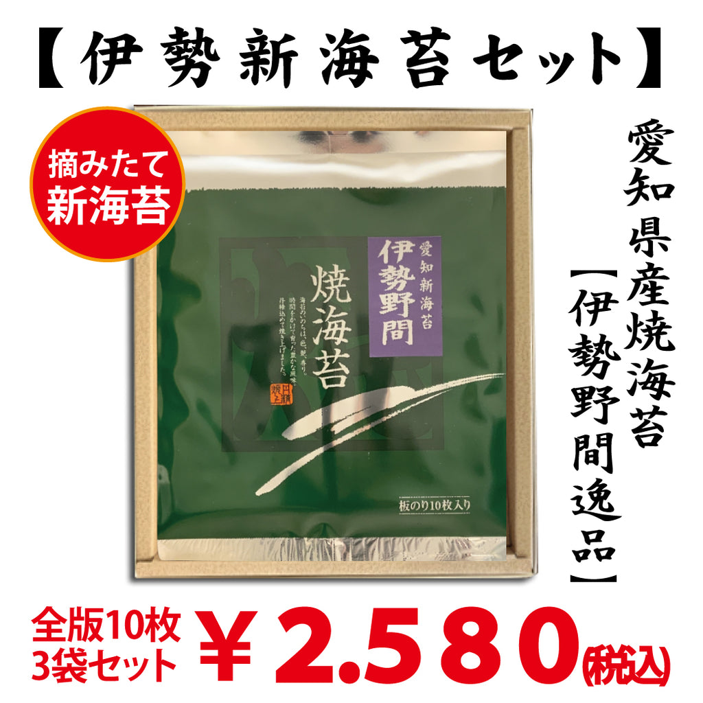 摘みたて新海苔【愛知伊勢湾産】「伊勢野間逸品焼海苔」 全版海苔10枚入3袋セット
