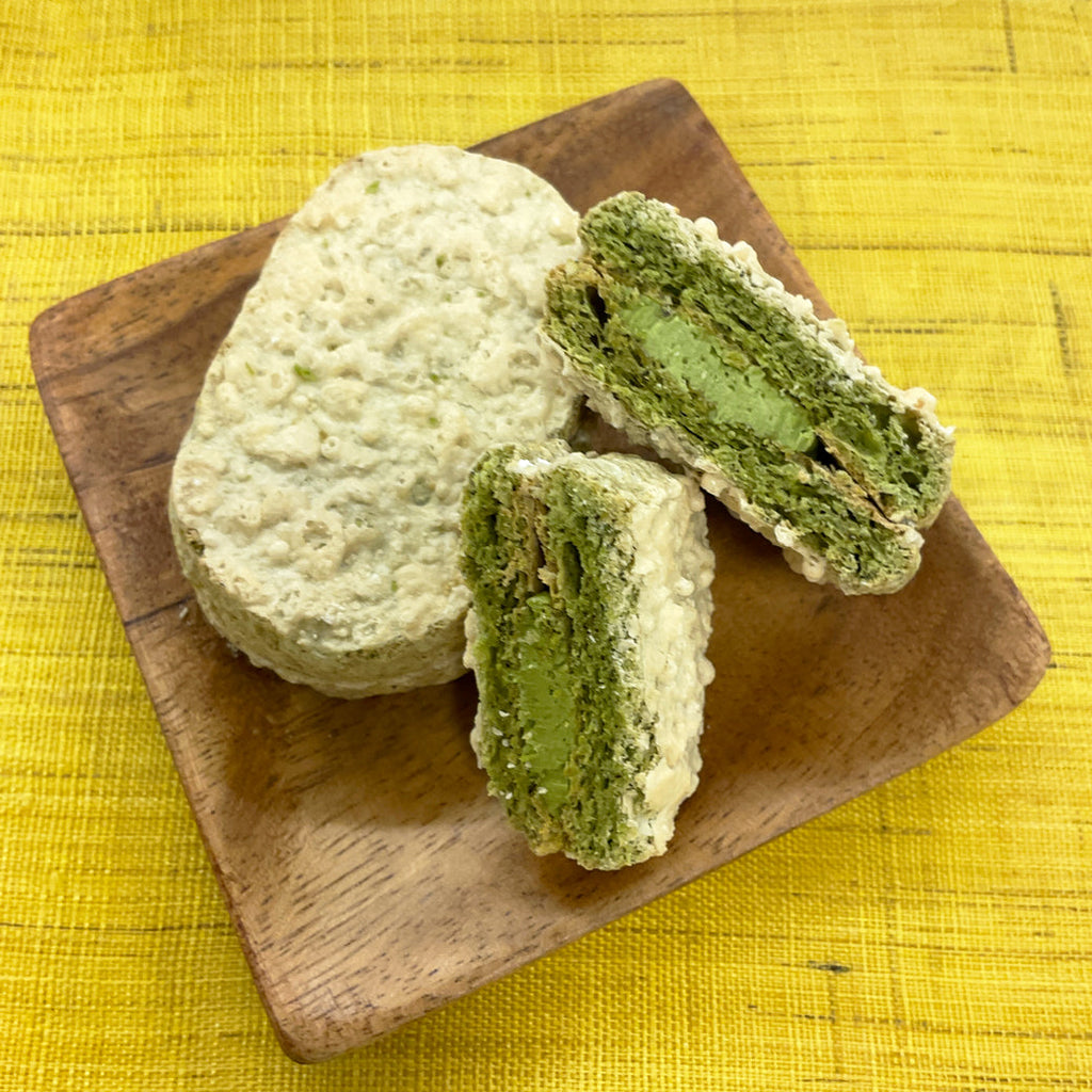 茶々ダックワーズは、米粉を使ったもっちり生地に牧之原産茶葉を練り込み、緑茶クリームをサンドした米粉のダックワーズです!! 甘みは抑えられ、大人のおいしさです!! サックッともっちり食感がとても美味しい緑茶たっぷりのダックワーズになります!